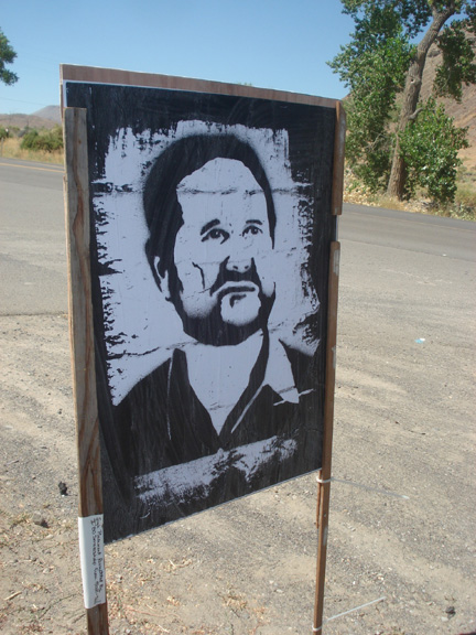 Since over half of this stretch is within the boundaries of the tribal lands of the Northern Piutes, I contacted tribal elders to get permission to place the images along the road for the week of the event. They not only graciously agreed, but were also very interested in our project, hearing about Bob Avakian, and receiving the Message and Call. In return, they told me about the history of their people, including how they defended their land against settlers and the U.S. Army in the Battle of Pyramid Lake.