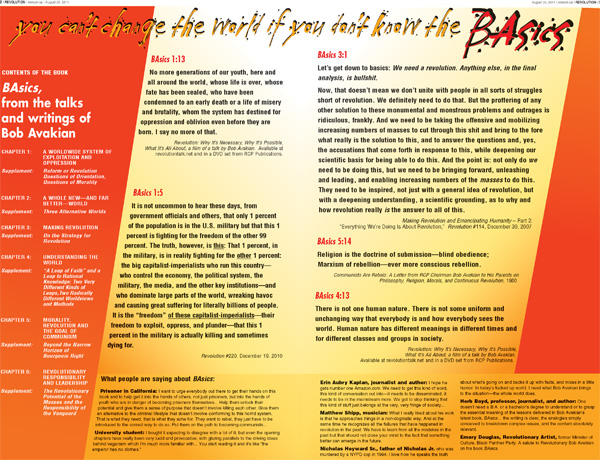 Our website applies the scientific approach BA has developed to analyze major events in society and the world—why they are happening, how they relate to each other, how all this relates to the system we live under, where people's interests lie, how revolution is in fact the solution to all this, and what the goals of that revolution are.