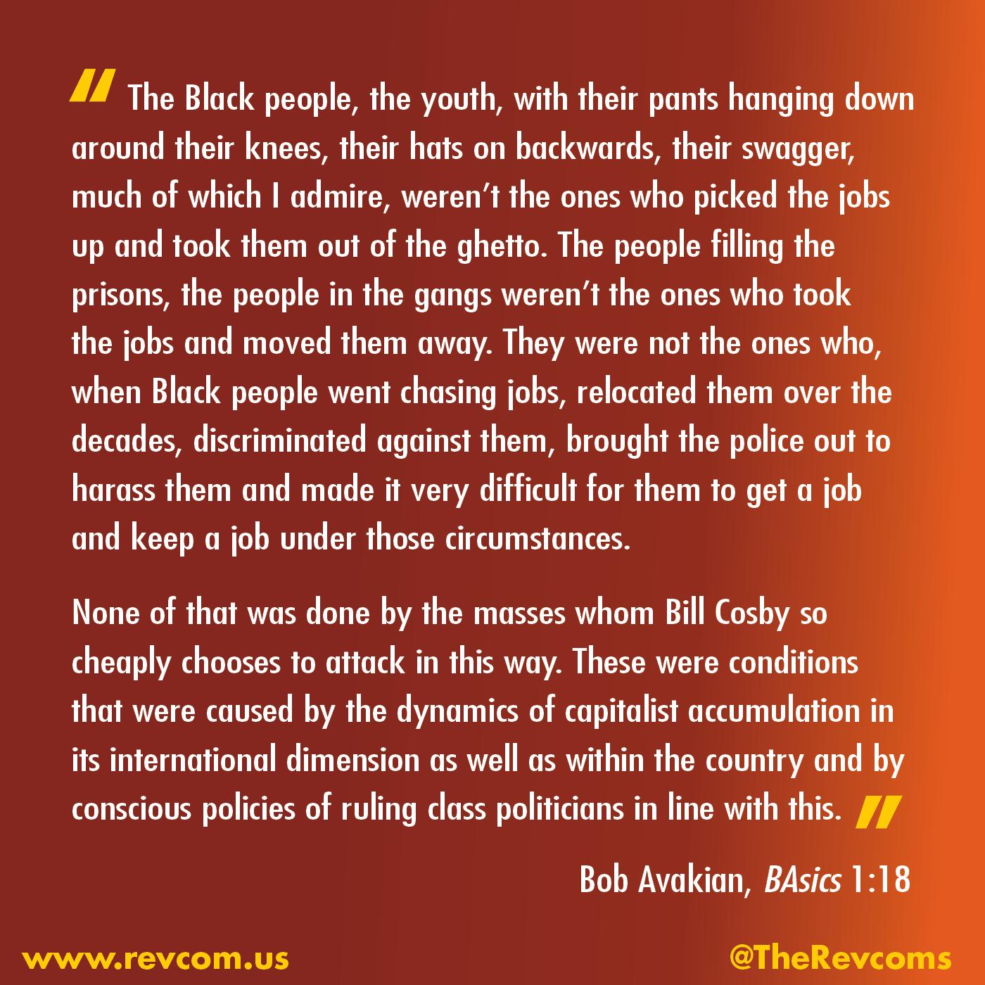 A truth from Bob Avakian that needs to be confronted: “So what does this system do with youth that have no future and no prospects? It contains them.... contains them violently.” (From “Racial Oppression Can Be Ended—But Not Under This System.”)