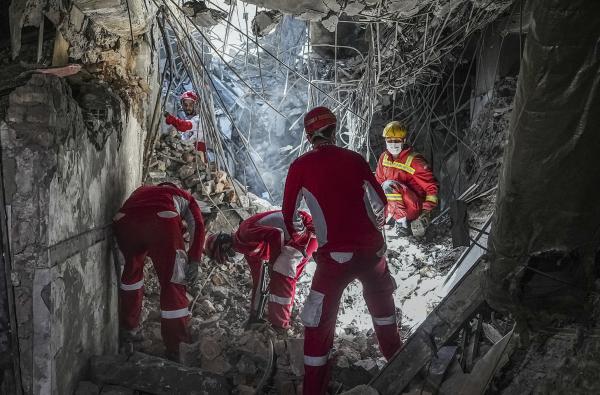 Rescuers search through the rubble of a damaged section of Iran’s Evin prison on June 24, 2025, the day after an Israeli airstrike. Photo: AP/Mostafa Roudaki