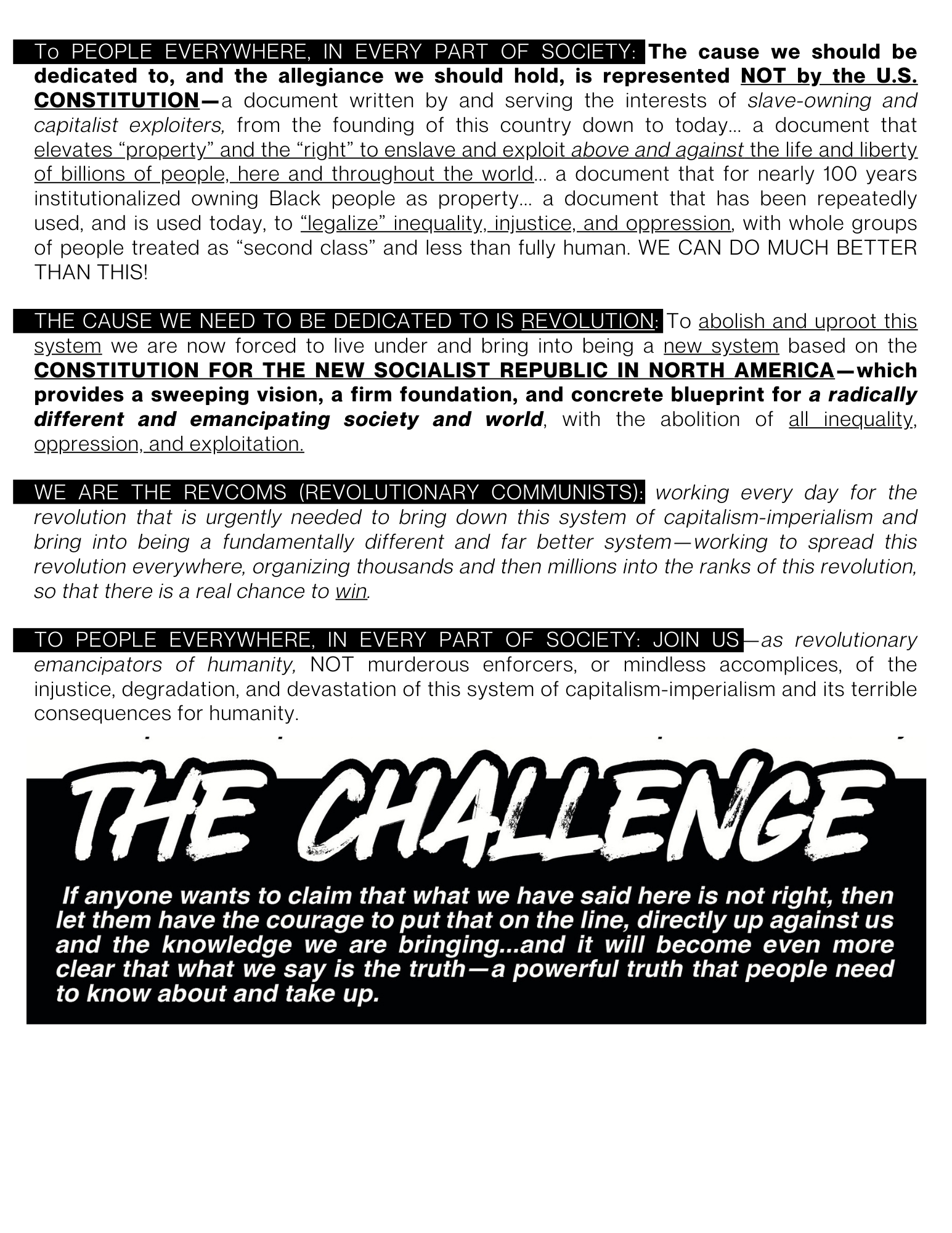 Este Martes Solidario, dona todo lo que puedas para ayudar a parar la acelerada consolidación del fascismo de Trump y MAGA. Tu contribución impulsará a los voluntarios revcom que están en las líneas del frente en Washington, D.C. y a través de Estados Unidos — y ayuda a poner ante millones de personas el análisis y visión revolucionaria de Bob Avakian que se necesitan con urgencia. Las apuestas son muy altas y el tiempo apremia — dona hoy a la lucha por un futuro diferente y emancipador para la humanidad.