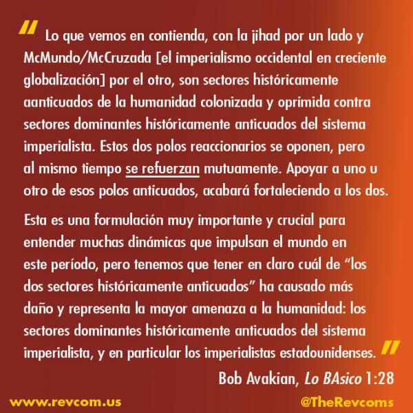 El sitio web Revcom.us sigue la dirección revolucionaria de Bob Avakian (BA), el autor del nuevo comunismo. Bob Avakian (BA) ha analizado científicamente que nos encontramos en un momento poco común cuando una revolución real se ha vuelto más posible en Estados Unidos. Ha trazado una estrategia para hacer semejante revolución, y ha expuesto una visión panorámica y plano concreto para “lo que sigue” en la Constitución para la Nueva República Socialista en América del Norte.