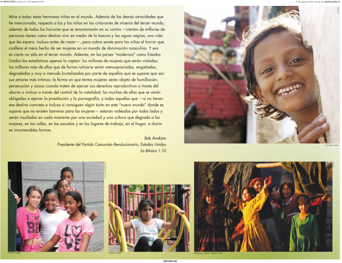 Aquí va otra verdad profunda: a pesar de todas las formas en que las gruesas cadenas de cientos y miles de años de tradición opresiva pesan sobre las masas de personas —y colocan una pesada carga particularmente sobre la mitad de la humanidad que es femenina—, existe un profundo anhelo de liberarse de todo ello, lo que, además de conducir a esperanzas imaginarias de salvación sobrenatural, también estalla en una furia desenfrenada en este mundo real. Y hay que convocar a esa furia en toda su extensión, darle una expresión científica y revolucionaria —con vistas hacia la emancipación de todos los oprimidos y explotados del mundo, y en última instancia de toda la humanidad— con el fin de luchar contra la fuente fundamental de todo el sufrimiento: este sistema del capitalismo-imperialismo, con su supremacía masculina patriarcal asfixiante y brutal, junto con todos sus otros ultrajes. Esto adquiere un sentido aún más poderoso y una importancia urgente en la situación actual de Estados Unidos (y en otros países), donde la afirmación forzosa de la misoginia cruda (odio por las mujeres) y la subyugación patriarcal de las mujeres es cada vez más flagrante y desenfrenada, centrada a un grado importante ahora en la escalada de acciones para seguir quitándoles aún más a las mujeres un control sobre su propia vida y su propio cuerpo, con los crecientes ataques al derecho al aborto, y hasta al control de la natalidad. En este mero momento, es necesario asumir ampliamente esta consigna y este llamamiento y transformarla en una fuerza material poderosa: ¡Romper las cadenas, Desencadenar la furia de las mujeres como una fuerza poderosa para la revolución!