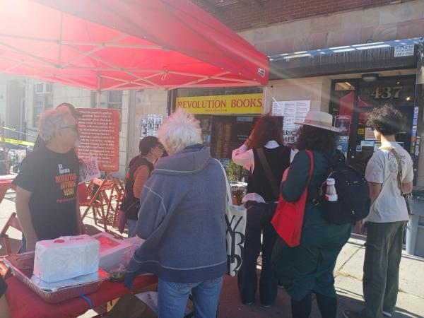 EL CUERPO REVCOM Por La Emancipación De La Humanidad llevó a cabo una exitosa venta de productos horneados por la “¡Revolución, y Nada Menos!”, a fin de recaudar fondos para la Campaña para Poner @BobAvakianOfficial en Todas Partes y Libros Revolucion / Revolution Books-ciudad de Nueva York. Tuvimos una escena animada frente a la librería con gente que se detenía a comprar postres. Tres personas y un negocio de postres que nunca antes habían donado hicieron brownies, bizcocho Bundt y galletas con chispas de chocolate. Uno de los tres es un niño de 12 años que recién había conocido la revolución. Otras siete personas, incluidos simpatizantes de larga data y unos revcom, hicieron una variedad de postres. Uno de los organizadores de la venta hizo galletas con “Habla BA”, “RNL” (“¡Revolución, y Nada Menos!”), un diseño de “A romper las cadenas” y otros diseños. En menos de cuatro horas, se recaudaron $390, superando nuestra meta de $300.