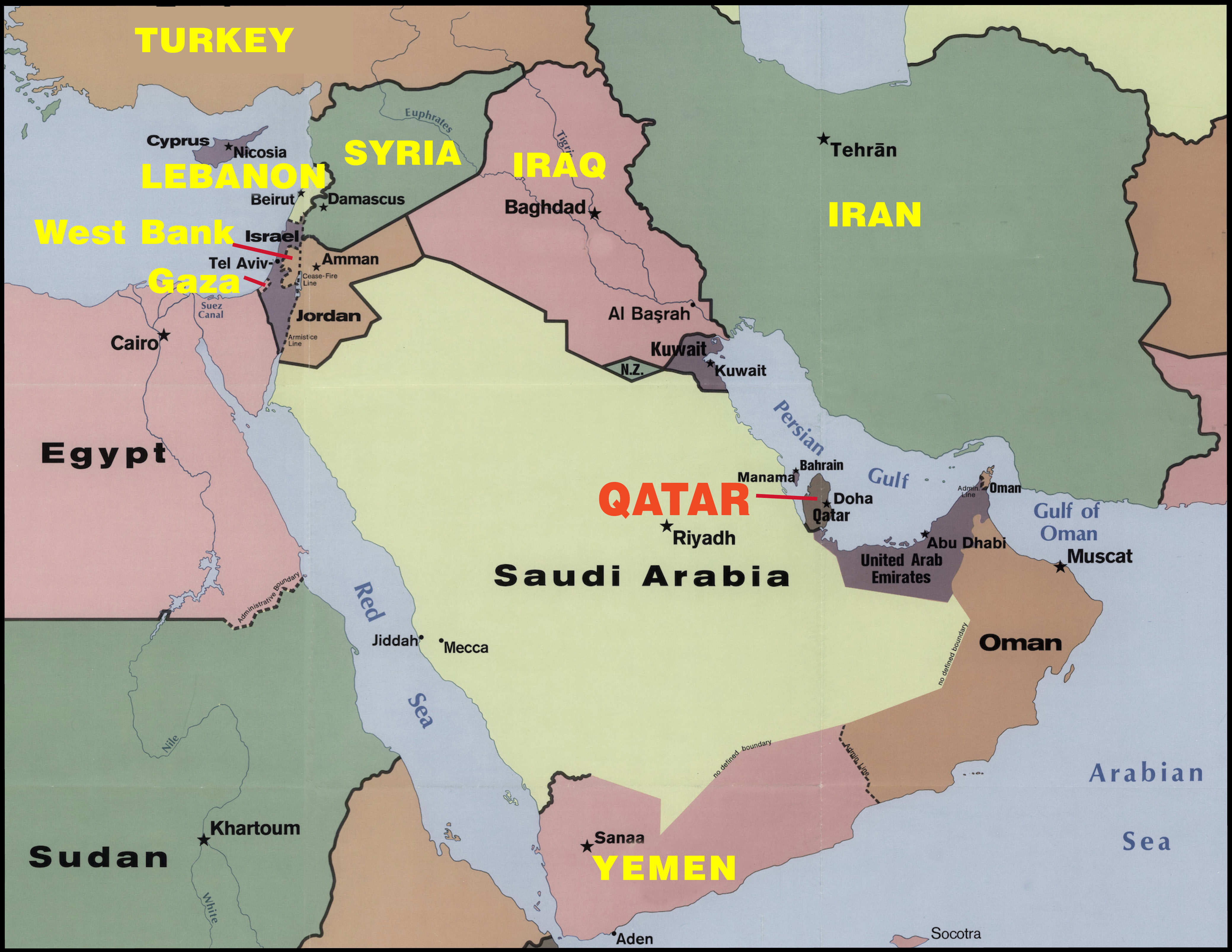 Qatar también ha desempeñado un papel muy útil para Estados Unidos en el ámbito diplomático. A instancias de Estados Unidos, ha servido de intermediario entre Estados Unidos y las fuerzas con las que no mantiene relaciones formales o con las que están en conflicto, pero con las que necesita comunicarse o negociar. Por esta razón, Qatar ha estado sirviendo de anfitrión a los líderes de Hamas (y antes al Talibán de Afganistán) y ha estado desempeñado un papel central en las negociaciones para un alto el fuego en Gaza2.