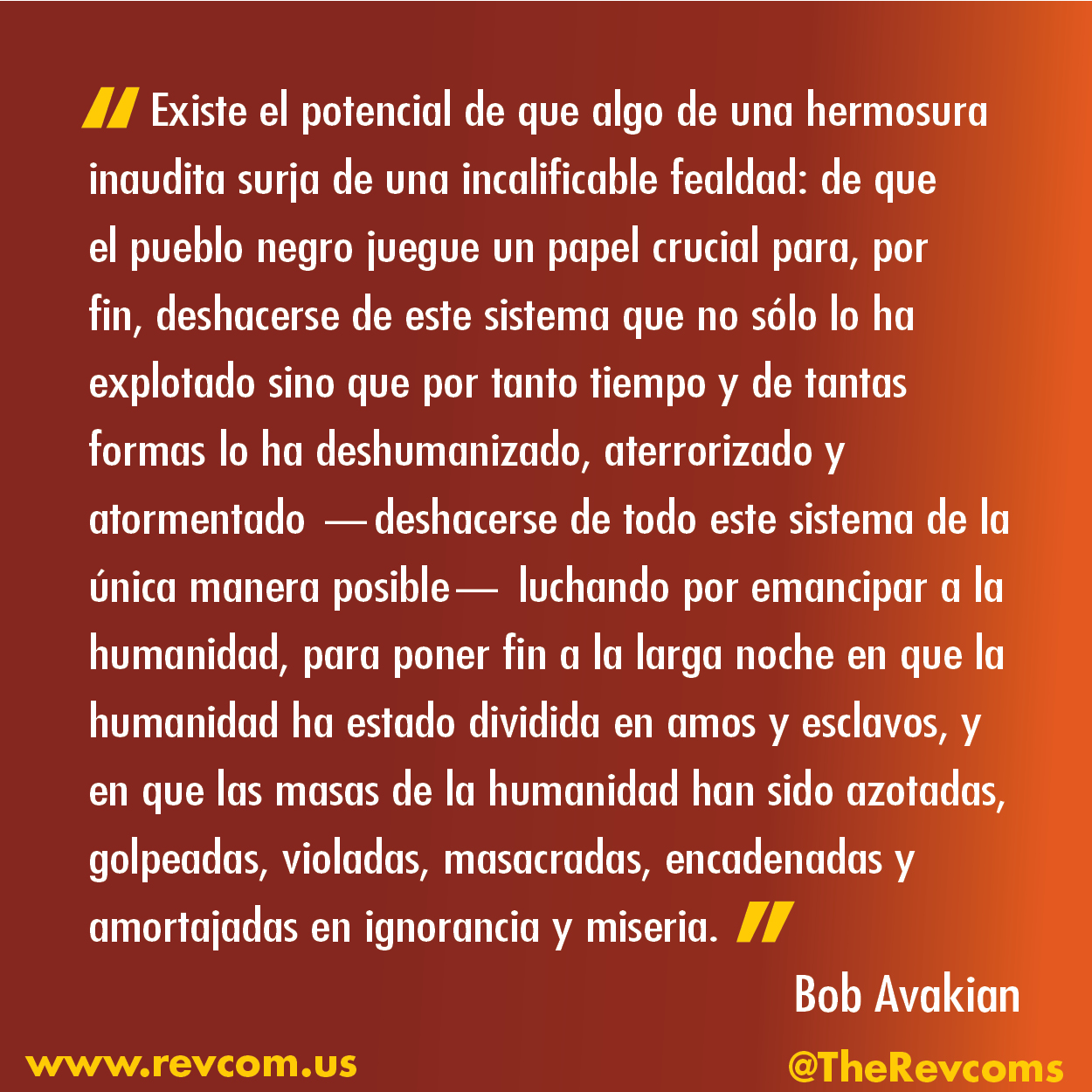 Lo que todo esto muestra no es que no haya logrado nada la lucha contra esta opresión. Lo que demuestra poderosamente es que hace falta que se acabe con todo el sistema: únicamente por medio de una revolución que ponga fin a todo este sistema, y cree un sistema emancipador, fundamentalmente diferente, se podrá acabar de forma definitiva y completa con esta opresión — y con toda la opresión. Pero permitir que el régimen de Trump lleve a cabo su horroroso programa solo agravará aún más la situación, y dificultará mucho más que se lleve a cabo la necesaria revolución. Por otra parte, derrotar a este fascismo, mediante una movilización masiva, no violenta pero decidida y sostenida —al unir a todos aquellos a que se pueda unir contra este régimen fascista de Trump, al actuar para crear las condiciones en las que se retire del poder a este régimen— será posible asestar un enorme golpe contra la opresión en general, y también será posible hacer una gran contribución a crear condiciones más favorables para la revolución liberadora hasta el final que se necesita.