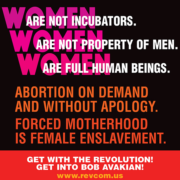Right now, this includes mounting massive resistance, on a scale unseen for decades (if ever), to these horrendous attacks now coming down and the worse ones surely to come. Again, there is a great need, for people to defiantly fight to defeat these spearheads of horror, these attacks against women, this misogynistic assault on the people!