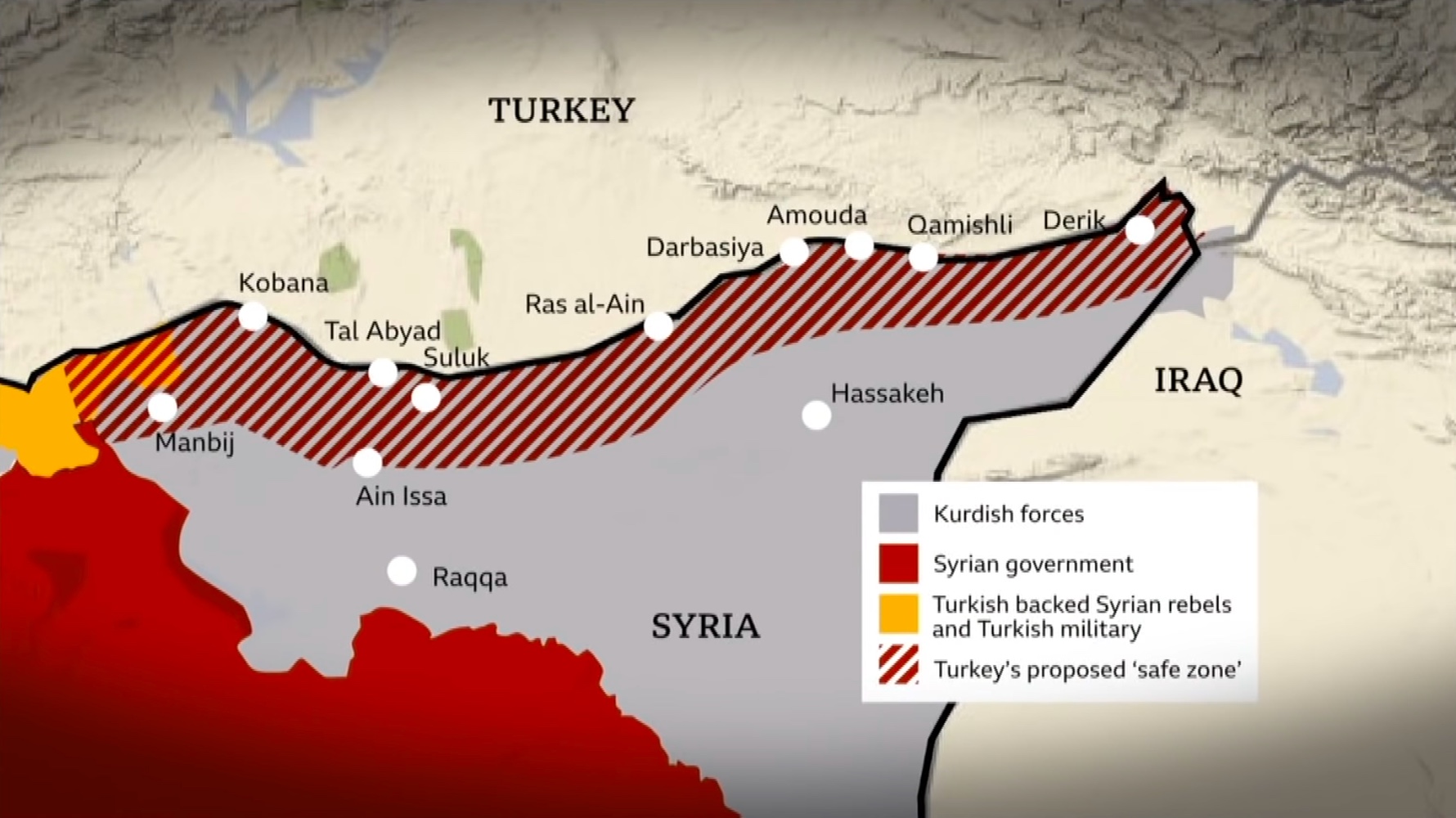 Above: Syrians flee shelling by Turkish forces in Ras al Ayn, northeast Syria, October 9, 2019.