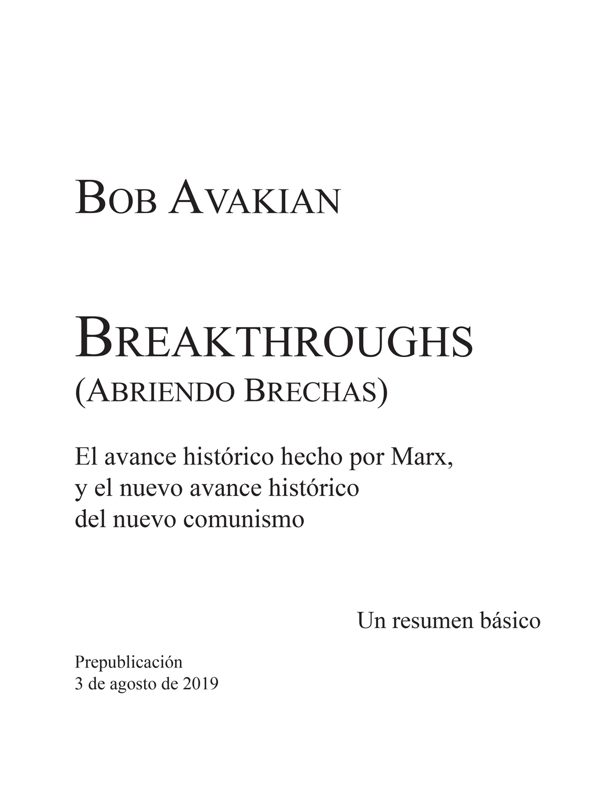 6. Breakthroughs (Abriendo Brechas): El avance histórico hecho por Marx, y el nuevo avance histórico del nuevo comunismo, Un resumen básico, que está disponible en revcom.us. [volver]