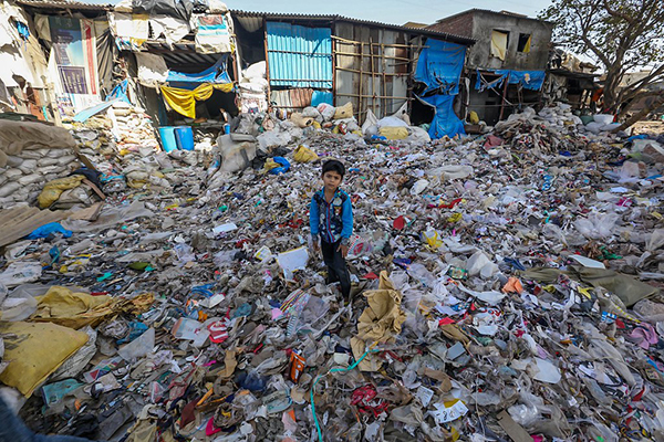 Piles of garbage in Dharavi, India.