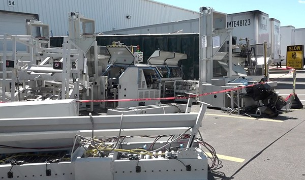 Dismantled mail sorting equipment dumped in a parking lot in Grand Rapids Michigan.