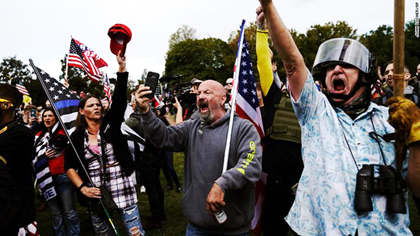Trump told the Proud Boys to “stand by.” Here in Portland, Oregon, September 26, 2020. (Photo: AP)